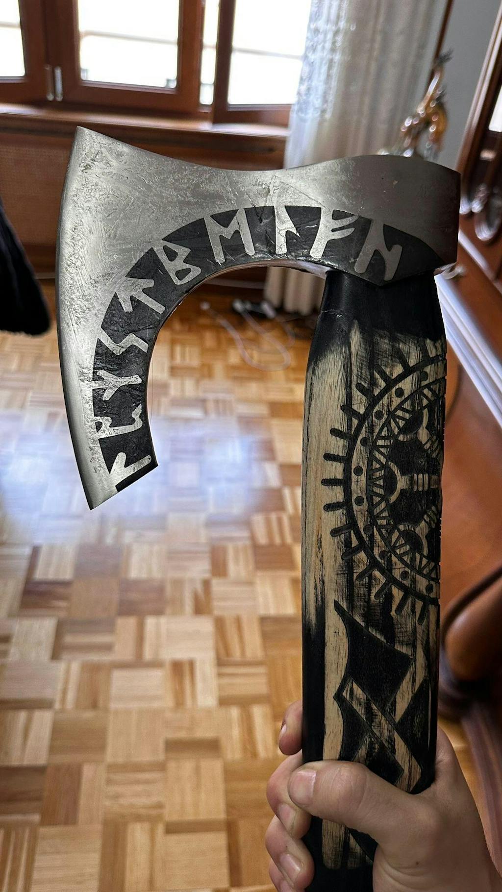 An axe that exudes both durability and power. Its sleek black finish pays homage to the darkness of the northern nights under which Vikings once roamed. Each swing of this axe echoes with the echoes of ancient battles and the resilience of those who fought for honor and glory.