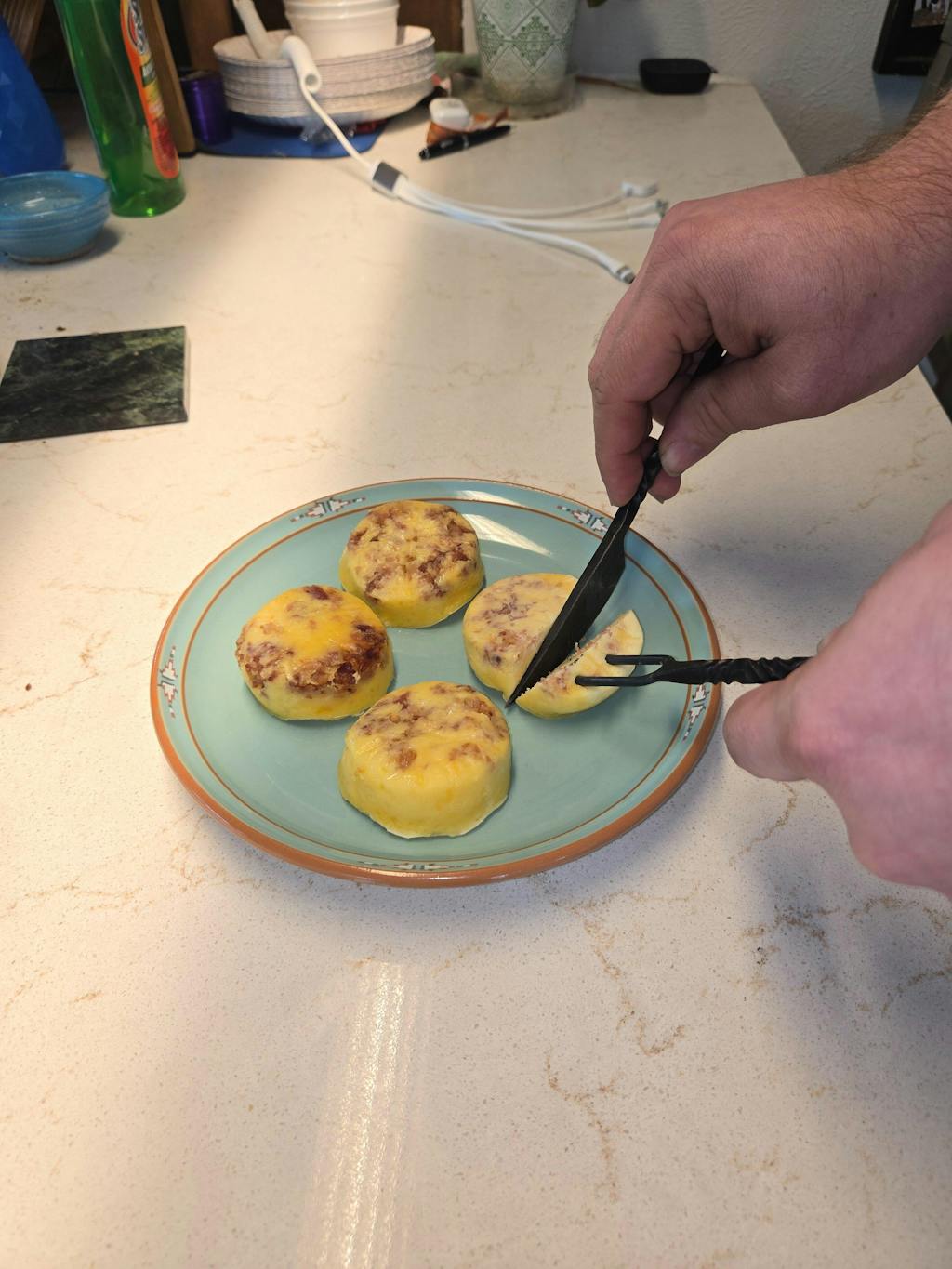 Both of my Cuttlery sets arrived today. I do like them but was a little let down with the size. In the images, they look a lot bigger than what I have been given. They're smaller than a normal set of cuttlery knifes, forks and spoons. Also the quality was slightly less than expected. If they'd come straight from the forge to the delivery box, then that would make sence... regrdless, I like them, just would have liked them to be twice the size. In saying that, if you make them twice the size, count me in.
