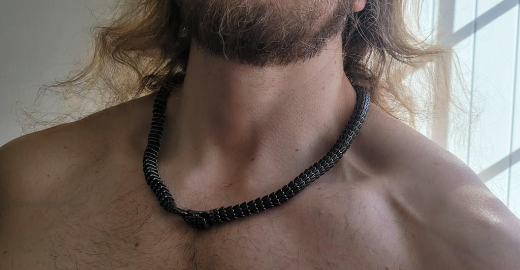 Crafted in the likeness of the serpent itself, the Jörmungandr necklace is a masterpiece of design and craftsmanship. Its sinuous body coils around your neck, its gleaming scales and sharp features capturing the essence of this mythical creature.